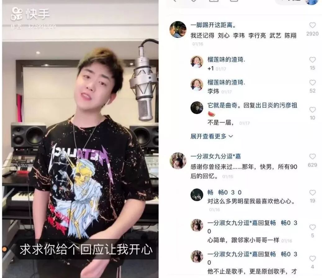 现在的娱乐产业已大不相同,“流量明星”依然被相当一部分人嗤之以鼻,却最受资本和资源的青睐。艺人对粉丝的吸引力不仅在于作品,更多的是在多元化的综艺和影视剧上,而后两者恰恰是最容易出圈的东西。有活动,就有曝光,也就更有可能受到更多人的喜爱。主业和副业本末倒置后,音乐反而成了歌手的附加值。细数当今的音乐偶像,十二首歌的正规专辑越来越少,多的是一年只出一两首单曲的艺人,资本和市场始终对他们趋之若鹜。另一大优势在于互动渠道。早期的通信方式单一,想要看到明星的脸,除了去现场,就是守电视。如果没有能露脸的活动,缺少和粉丝的互动,粉丝的热情很快就消退了。互联网和社交网络普及后,粉丝更容易获取到明星的讯息。即使是在空白期,明星也可以通过发微博一解粉丝的相思之苦,大大增加了粉丝的黏性。也有人尝试新的演出方式。2017年底,刘心注册了快手账号,除了上传唱歌视频和音乐作品外,偶尔还会直播。很多人看了他的视频后对他的实力大加称赞,也对他没有大红大紫表达了惋惜。