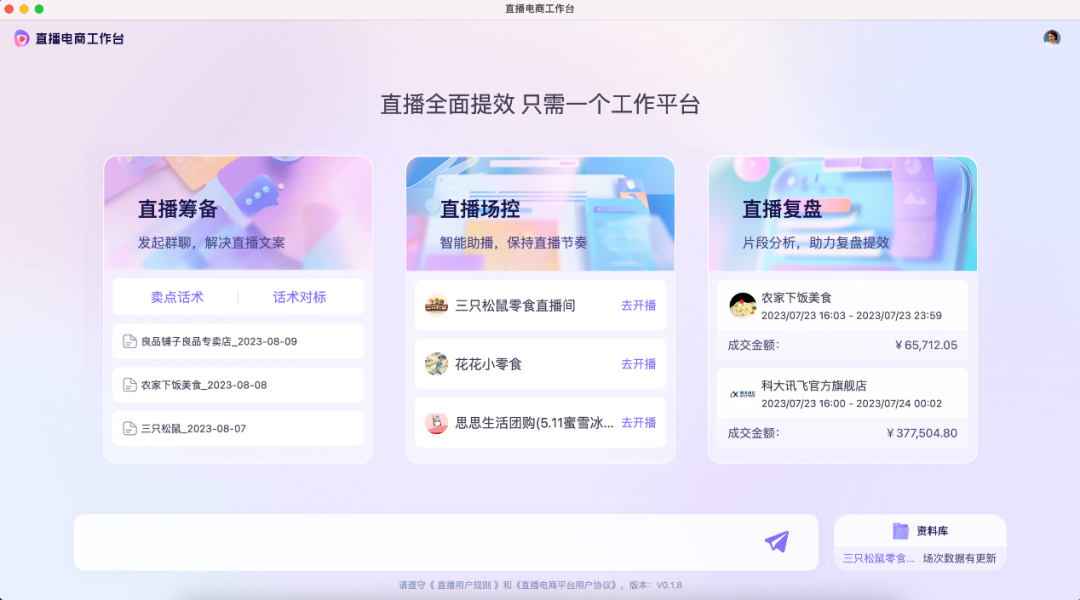 爆款直播间学习:用户输入需学习的直播间名称,RPA机器人自动进行直播间录像、提取音频并转写成口播稿。大模型对口播稿进行话术框架拆解和讲解逻辑分析。用户直接根据分析结果来快速对标直播间。