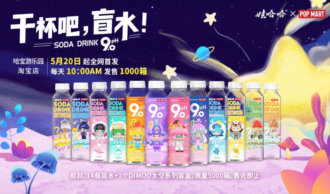在今年“520”当天,娃哈哈宣布与知名盲盒品牌泡泡玛特合作,推出了全球首款盲盒水。宗馥莉表示跨界盲盒正在将娃哈哈往年轻化的方面引领,而这次和泡泡玛特的合作,正是娃哈哈走到“年轻人中心”的第一步。