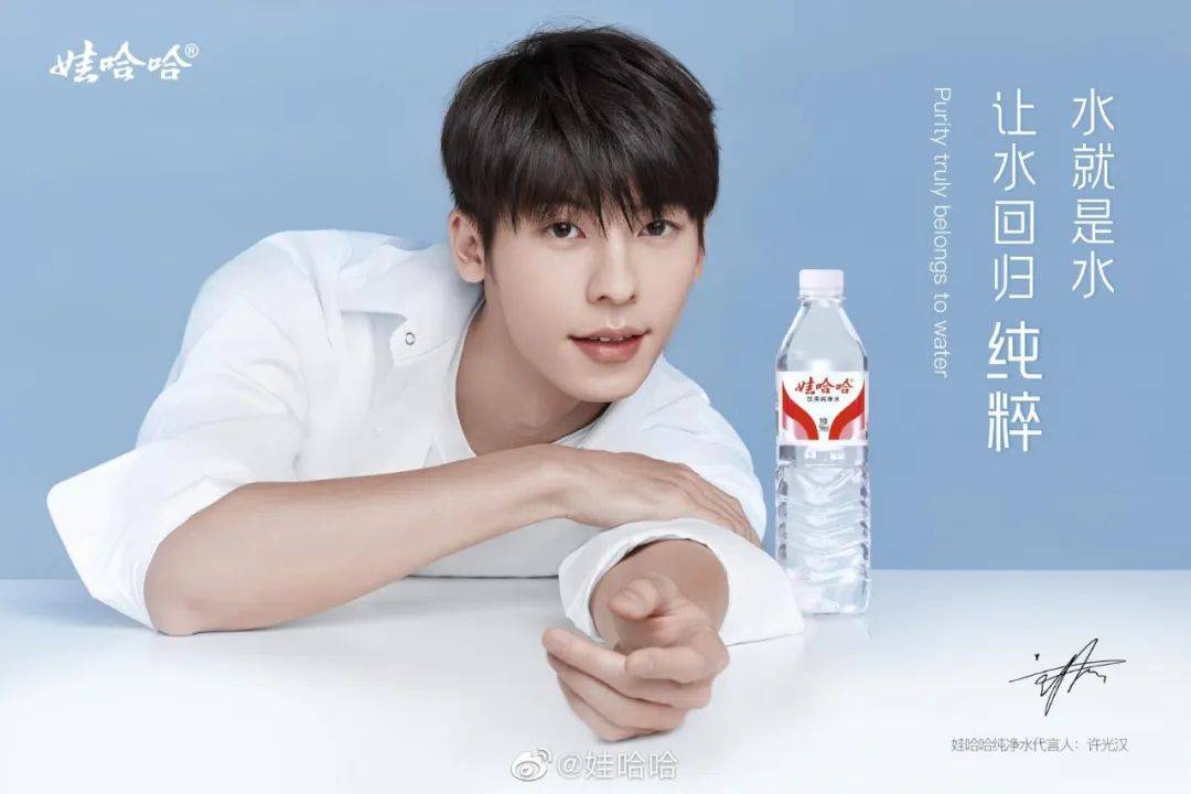 在凭借电视剧《想见你》大火之后,近期人气极速上升的许光汉成为了娃哈哈纯净水、苏打水系列产品新的代言人,与此同时,娃哈哈纯净水发布了全新广告语:“水就是水,让水回归纯粹。”